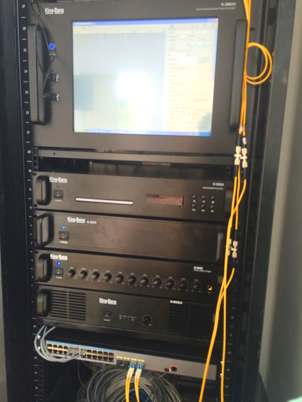 該項(xiàng)目共配置京邦電子(KING-BANG)的校園IP網(wǎng)絡(luò)廣播系統(tǒng),主要滿足學(xué)校的背景音樂播放、廣播通知、教學(xué)使用與緊急廣播等使用需求,整個(gè)系統(tǒng)主要由中心廣播機(jī)房、遠(yuǎn)程尋呼站、智能電源管理系統(tǒng)、樓道、走廊和校園室外廣播等區(qū)域組成。