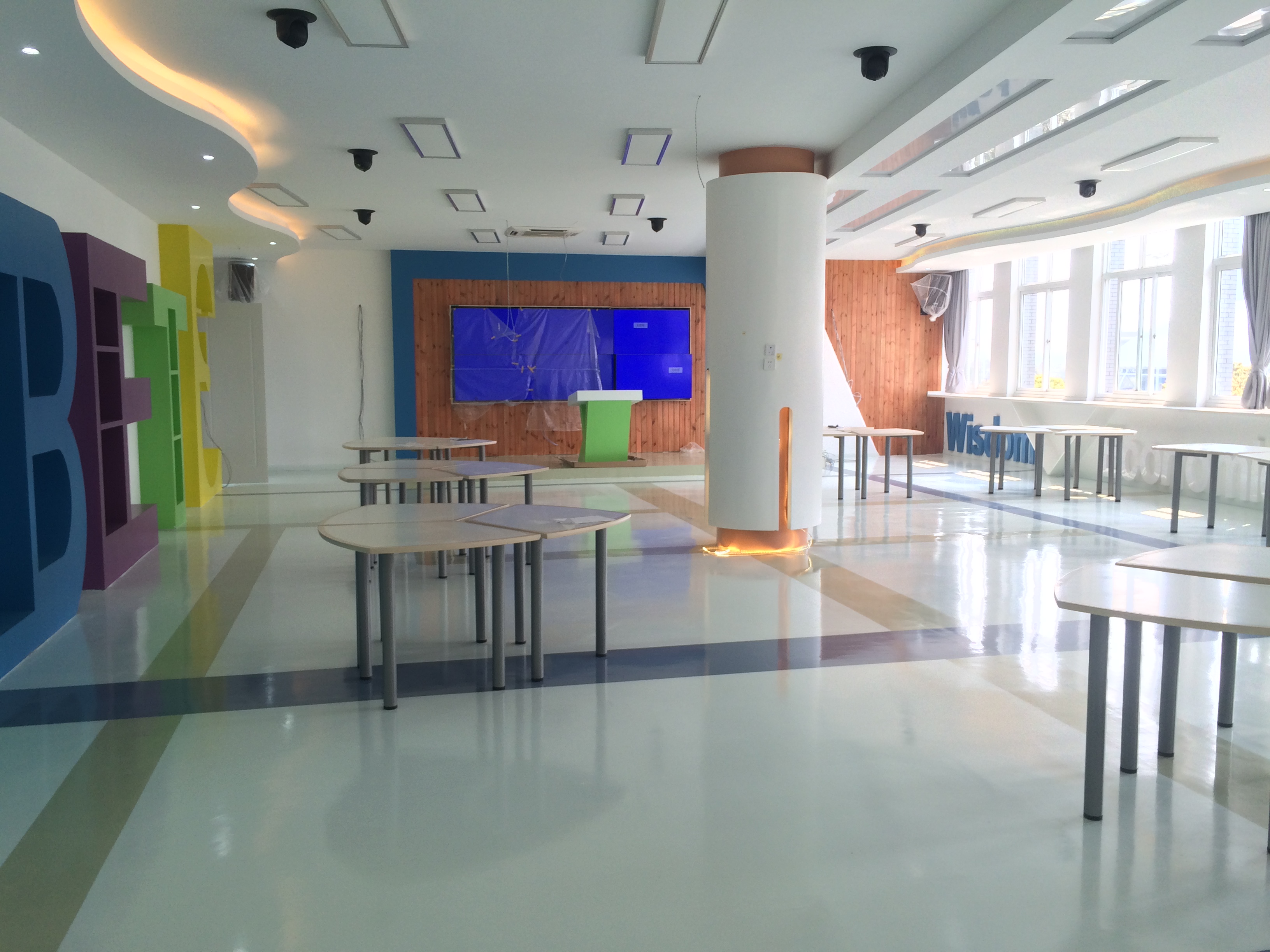 寧波經(jīng)貿(mào)學(xué)校會(huì)議室中安裝了京邦電子(KING-BANG)可編程中央控制主機(jī)。該系統(tǒng)以中央控制主機(jī)K-4960為核心,功能強(qiáng)大。通過(guò)無(wú)線真彩觸摸屏等設(shè)備作為人機(jī)交互式平臺(tái),一鍵隨心控制各種顯示終端、投影機(jī)、展示臺(tái)、DVD、功放、會(huì)議系統(tǒng)、電動(dòng)屏幕、電動(dòng)窗簾、燈光等設(shè)備。